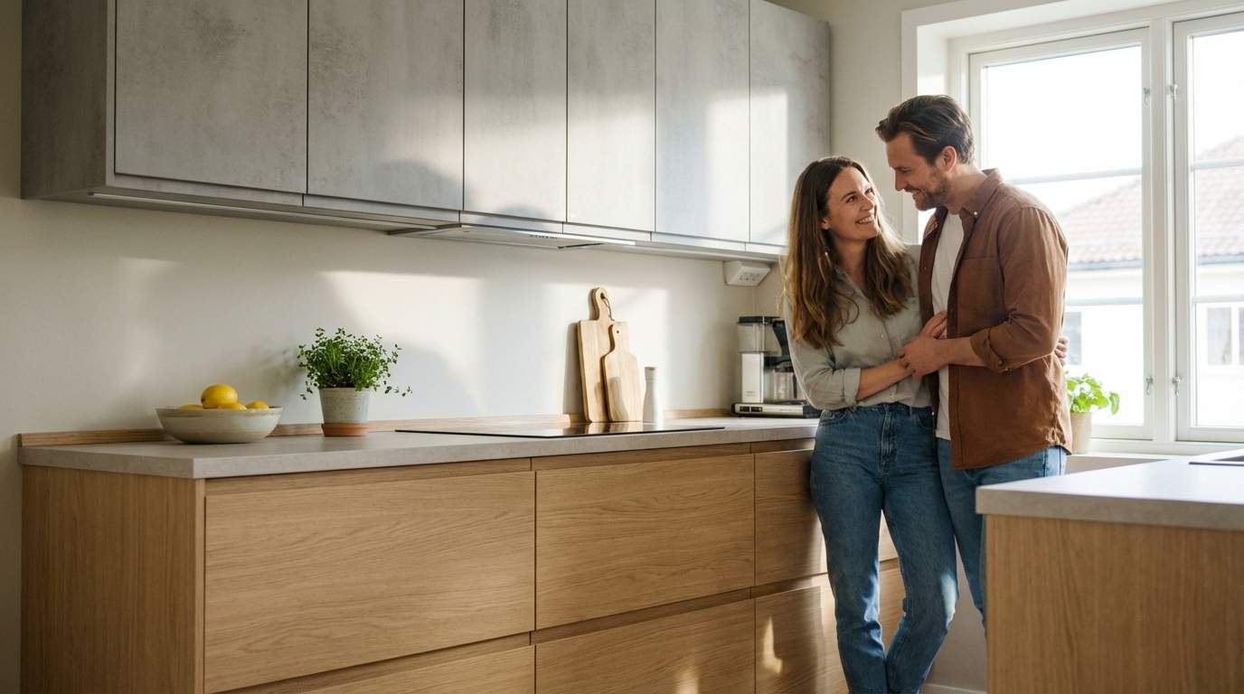 Schau dir an, wie sich diese Küche verändert hat – vorher und nachher ein riesiger Unterschied! Neuer Look durch Folie statt Neukauf – und das zu einem Bruchteil des Preises einer neuen Küche.